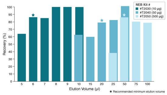 | Volume d’élution : | 6–20 µl | 20–50 µl | 50–100 µl |